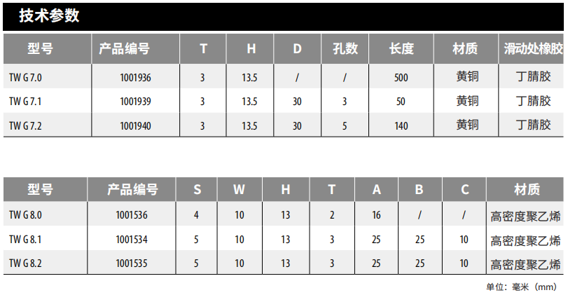 TW G 7.0/7.1/7.2/8.0/8.1/8.2(滑块) 刮屑板
