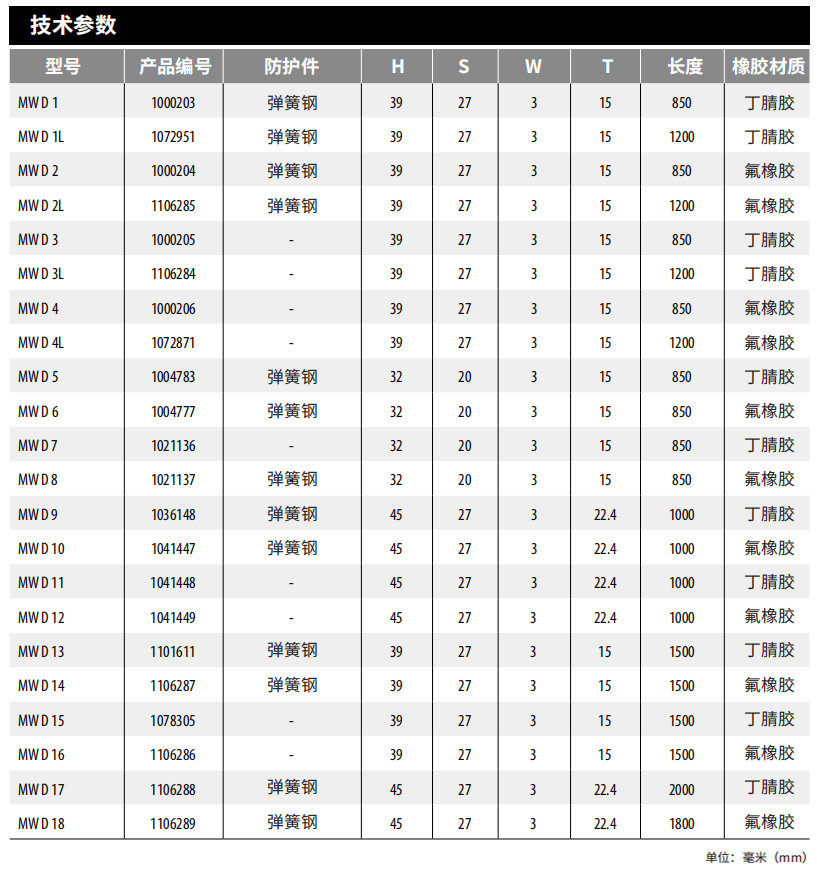 · 导轨刮屑板的选择 ( AW、SW、MW系列 )